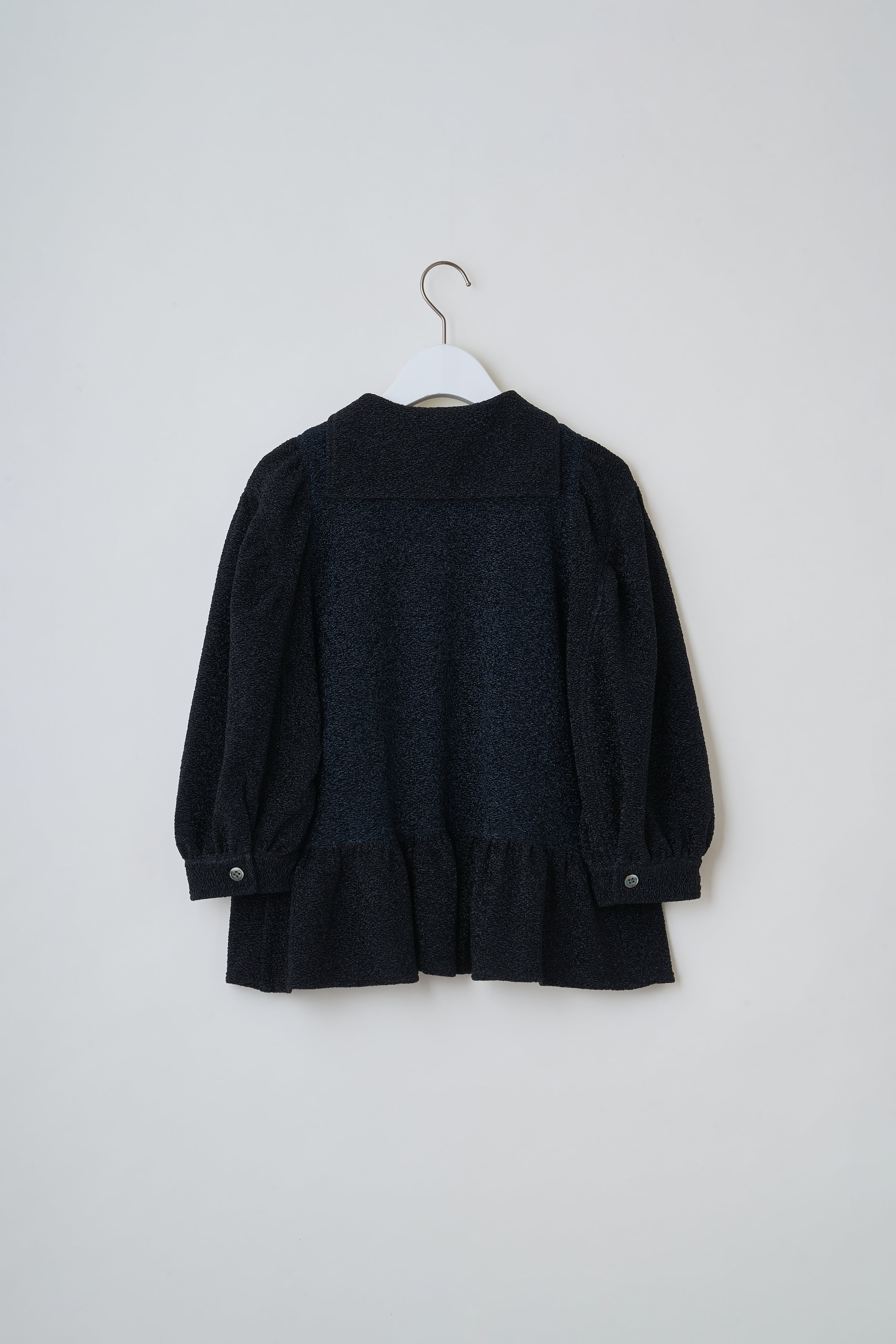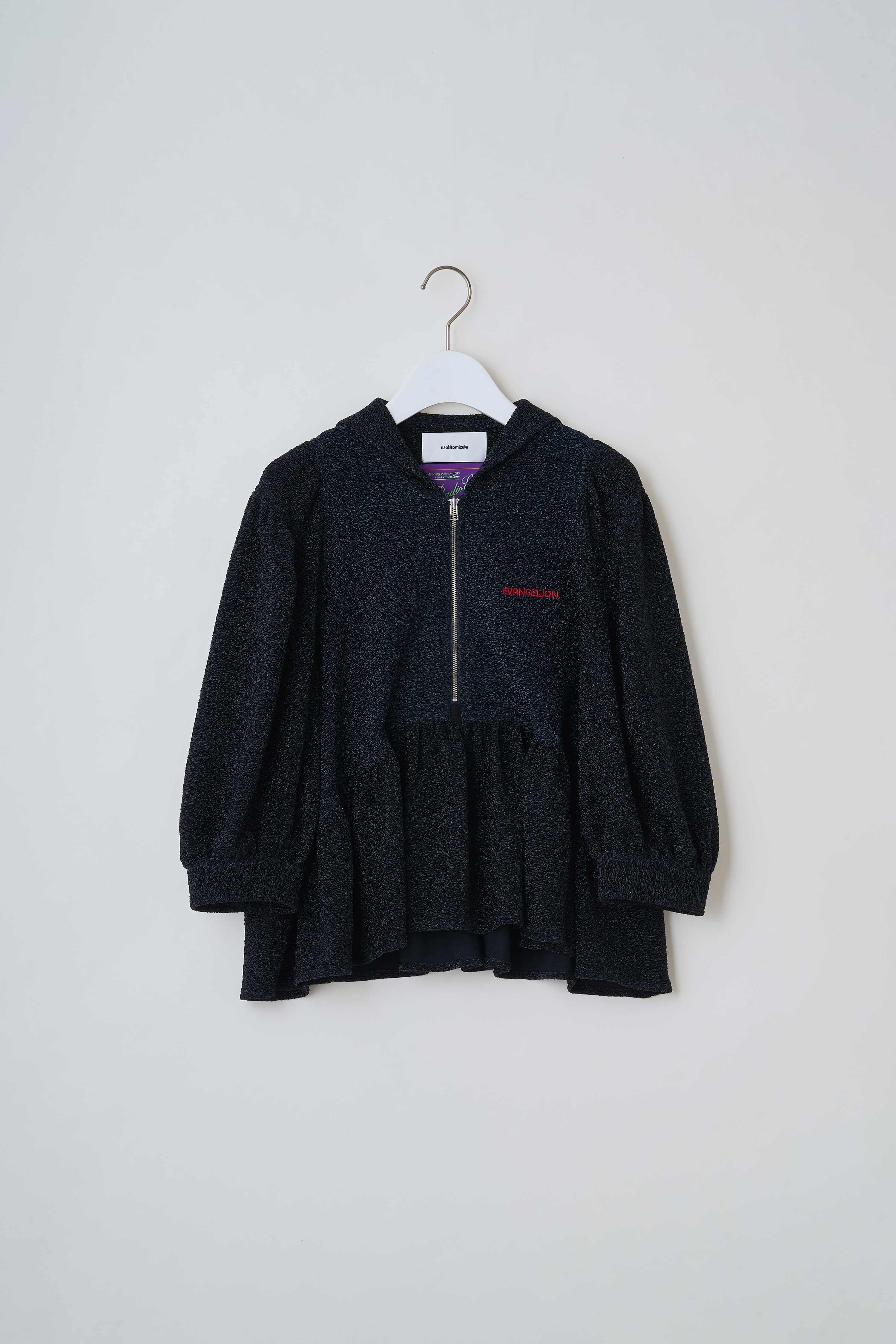 ハーフジップと小さなセーラーカラーが特徴的なデザイン。