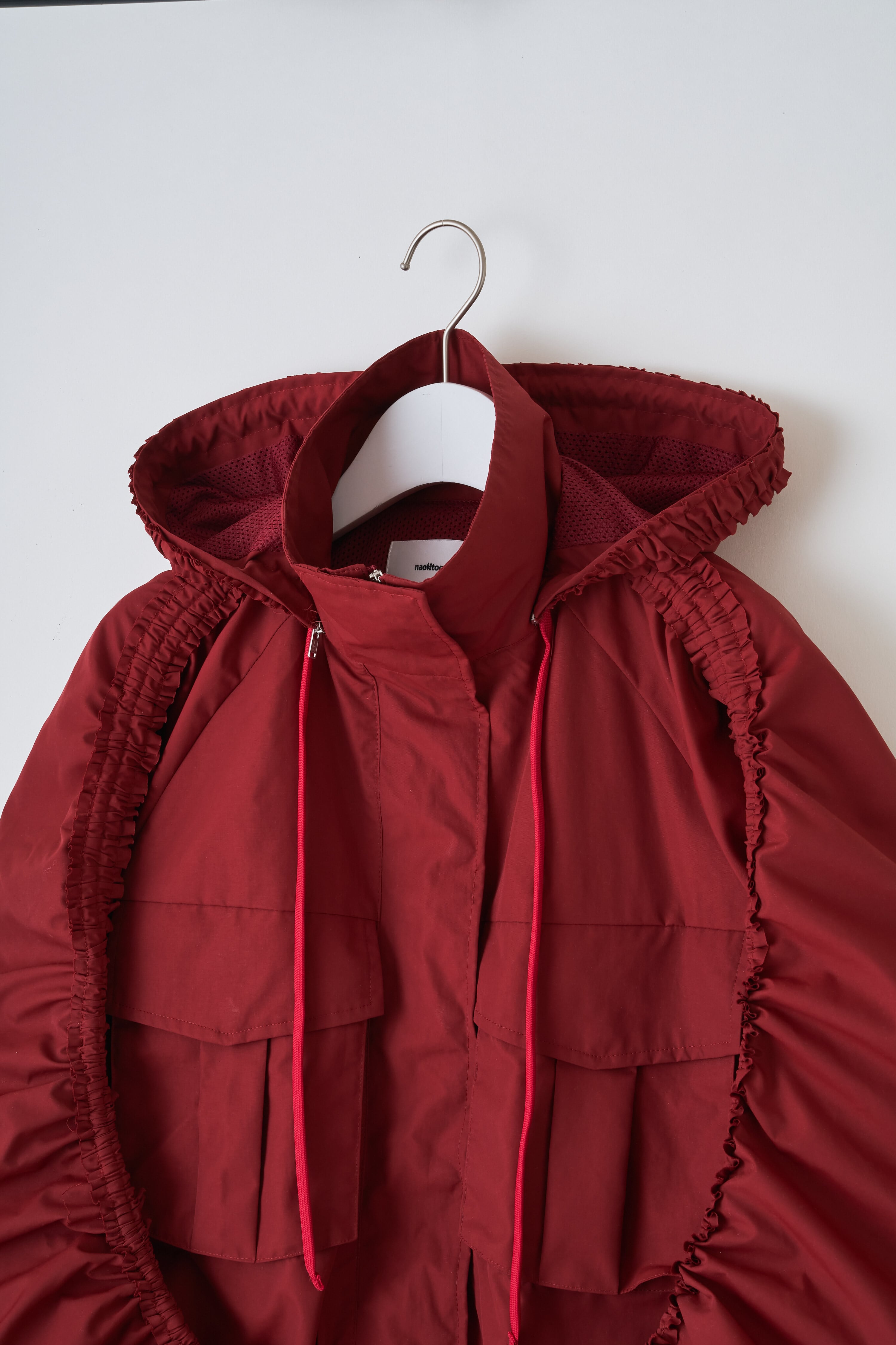 ギャザーとドローストリングで動きを加えた、ショート丈のブルゾンです。