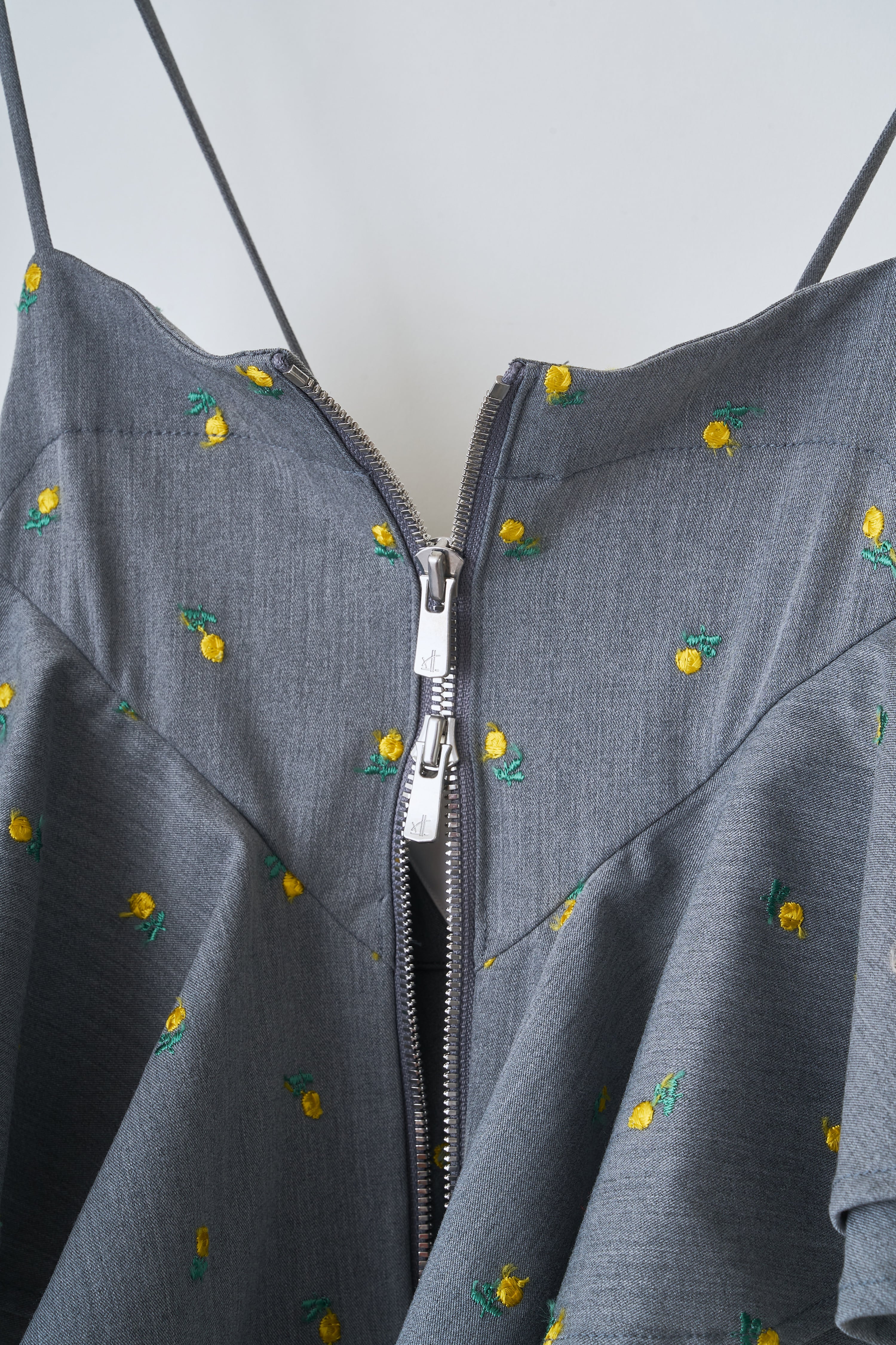 ダブルジップ仕様のタイトシルエットキャミソールワンピース。