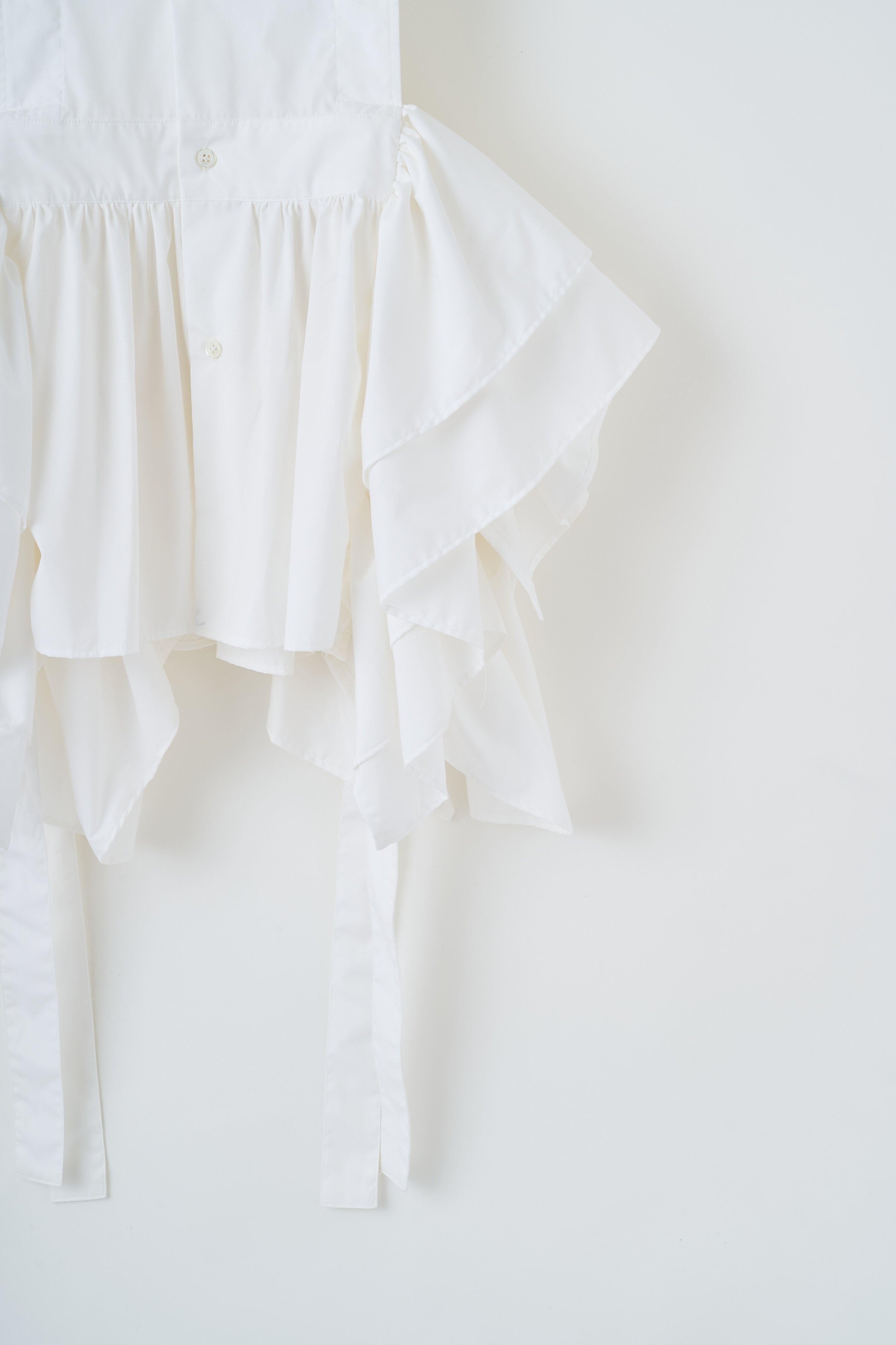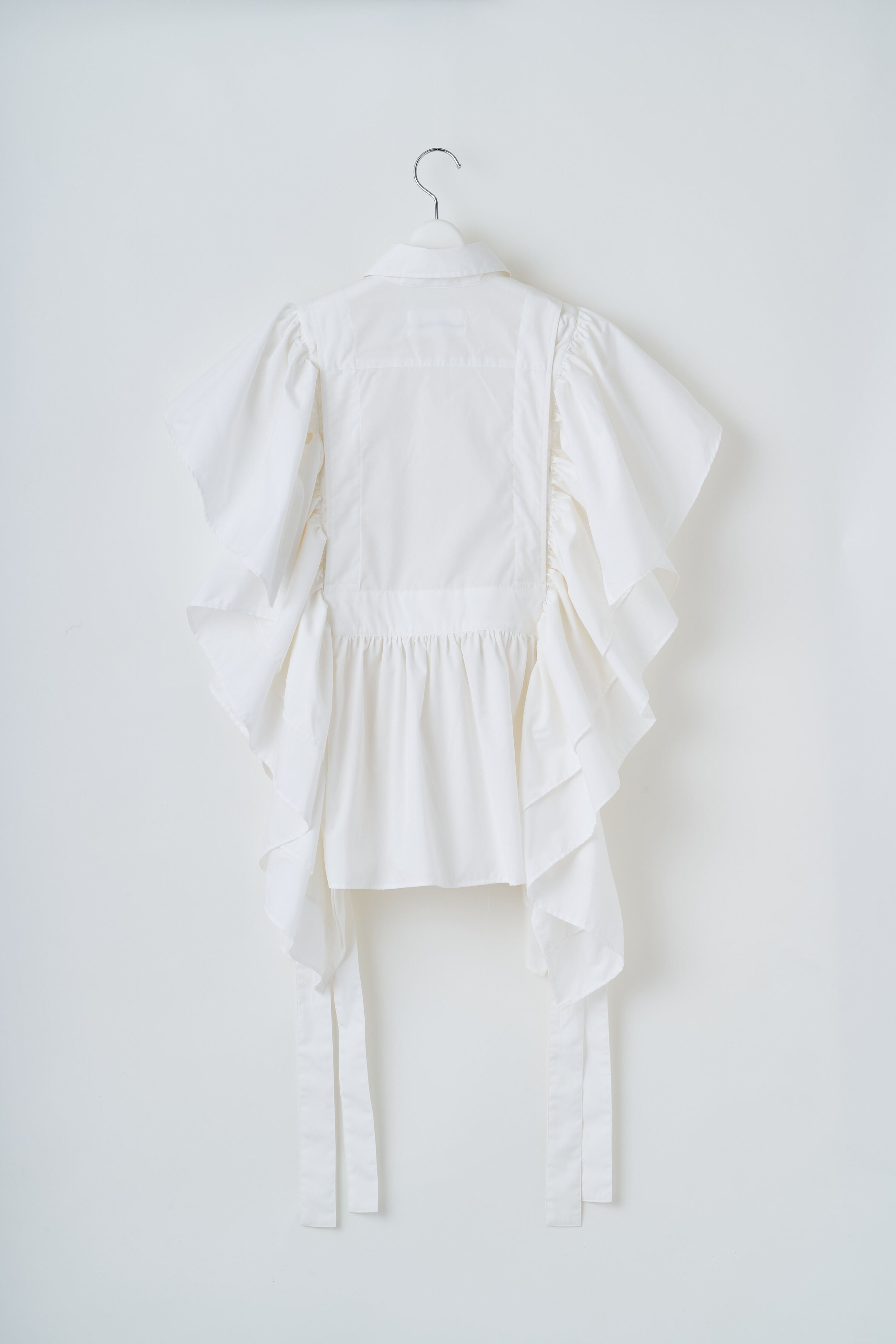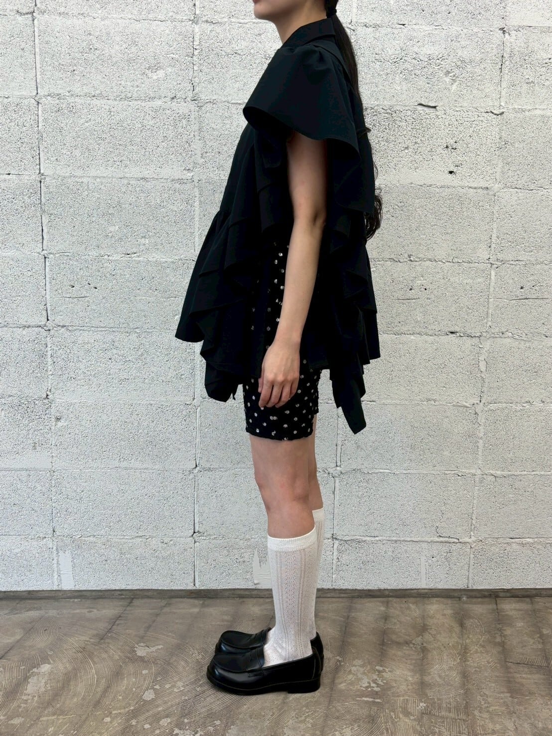 肩のボタンでフリルスリーブからノースリーブへ変形できる2WAY仕様になっております。