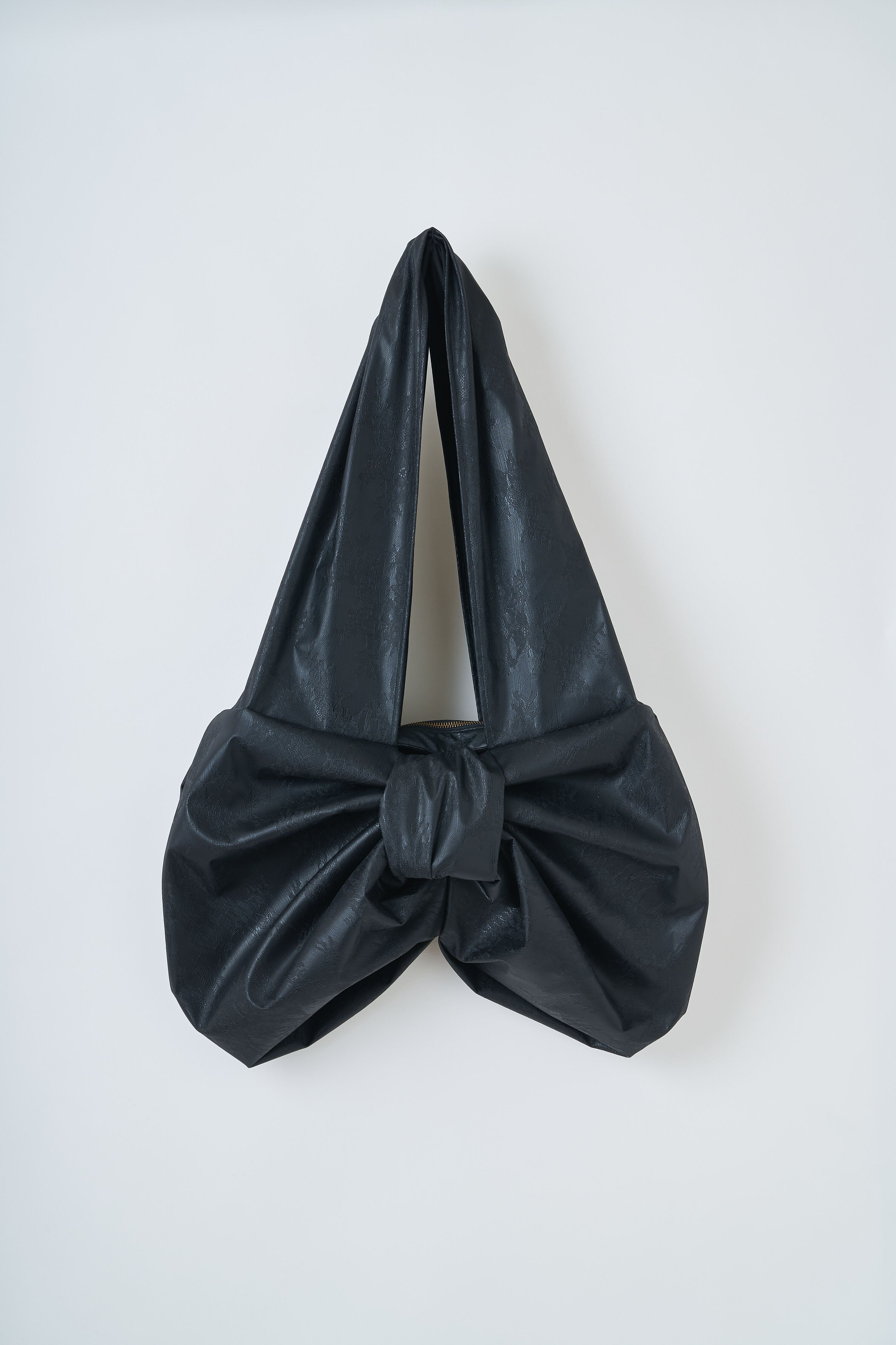 合皮にレース柄の発泡プリントの素材を採用。